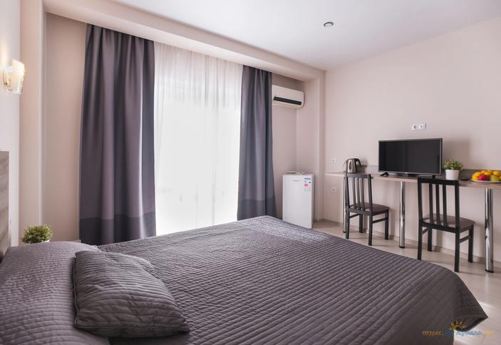 Однокомнатный комфортный номер площадью 17 кв.м. для проживания 2 гостей, оборудован современной мебелью с двумя односпальными или одной двуспальной кроватью, сплит-системой, холодильником и телевизором с кабельным телевидением.