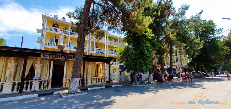 Отель "Афина" расположена в самом центре поселка Дивноморское на главной аллее, ведущей к морю, расстояние до пляжа составляет всего 150 метров, что займет менее 5 минут ходьбы спокойным шагом.