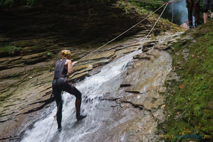 Каньонинг (Canyoning) - в дословном переводе с английского означает прохождение каньонов. На практике - это разнообразные маршруты, включающие в себя как спуски на веревках с использованием вертикальной техники, так и участки скалолазания, преодоления водных преград, хождения по каменным осыпям, прыжки с водопадов и т.д.