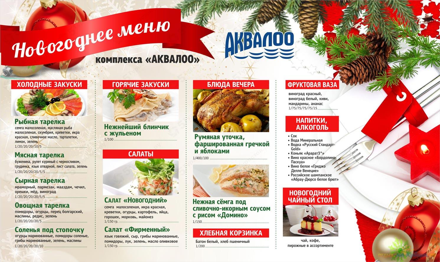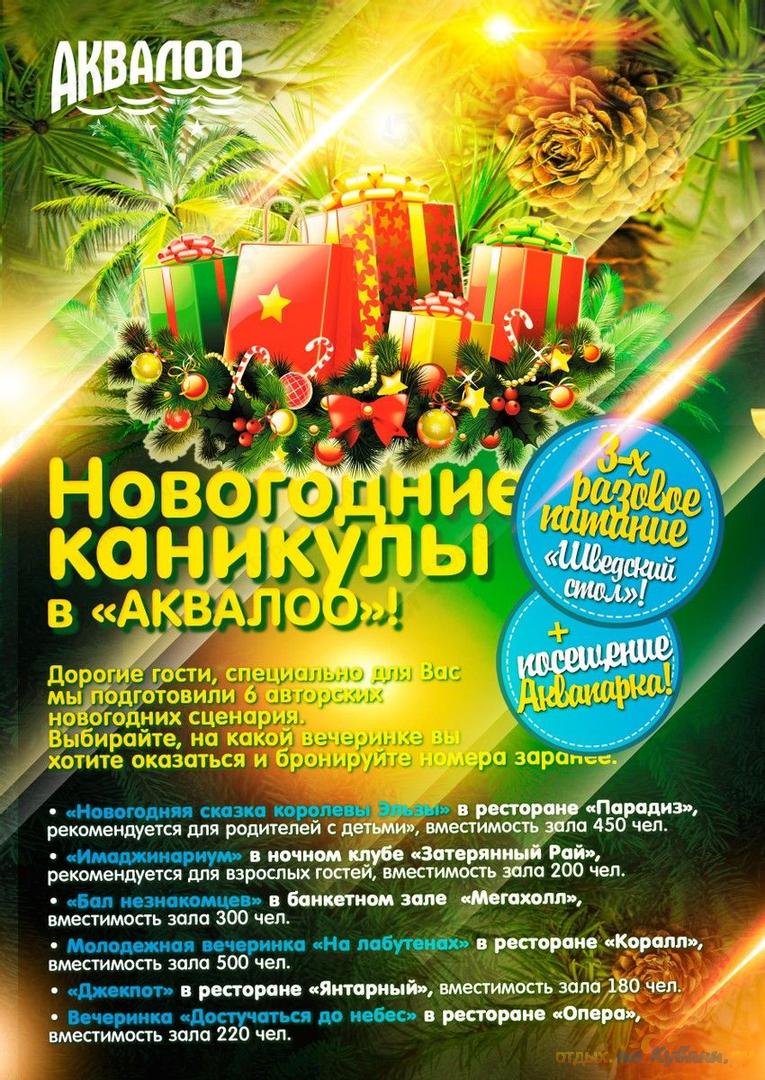 - посещение аквапарка (31 декабря с 10:00 до 17:00, 01 января 2017 с 14:00 до 21:00);