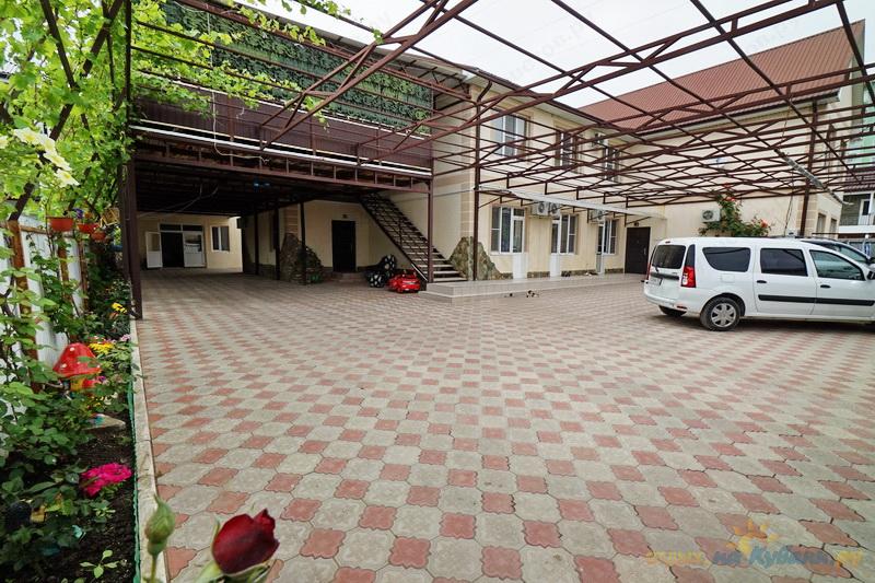 Территория гостевого дома – большой двор с бесплатной автостоянкой для машин и бассейном и детской площадкой. Также есть беседка, мангал. Рядом есть озеро, где можно порыбачить.