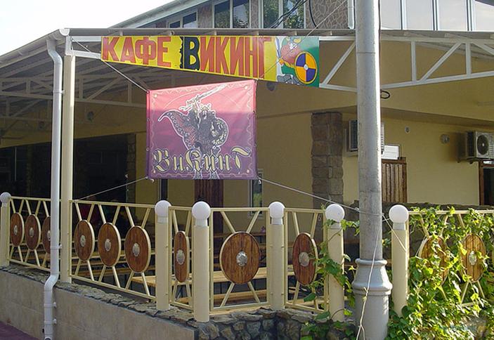 Кафе "Викинг" находится на берегу Черного моря города-курорта Анапы. В меню включены блюда эпохи средневековья. На втором этаже находится гостевой дом "Аркона".