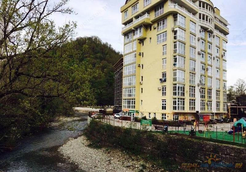 Квартира "На Гайдара" расположена в Дагомысе Лазаревского района курорта Сочи. Дом новый, находится на берегу реки.