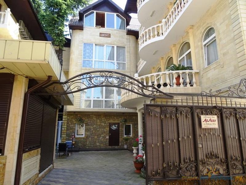 Отель "АрЛиан" находится на ул. Победы в Лазаревском районе города Сочи в 200-300 метрах от моря. Отель построен в форме буквы "П" наклоненной влево, фасад облицован натуральным камнем, а другая часть здания без облицовки. К вашим услугам двух- и трехместные номера, а также двухкомнатный номер люкс.