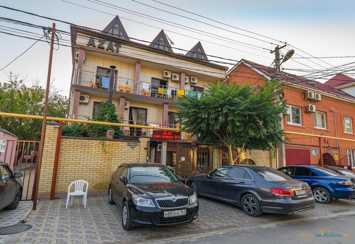 Трехэтажный корпус гостевого дома Azat находится в пригороде Анапы в знаменитом своими золотыми пляжами туристическом поселке Джемете. Здесь хорошо отдыхать с детьми, поскольку пляжи Джемете отличаются мелководьем (до 50 метров).