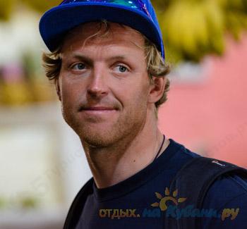 Крейг Каннигхем, (Канада) Журналы наперебой зовут Крейга Каннигхема одним из самых одаренных и стильных райдеров в современном кайтбординге, за заездами которого определенно интересно наблюдать вживую, и атлетом, которым Канада может гордиться. В 2012 году Крейг получил вайлд-кард на самые престижные соревнования по джиббингу Triple-S Invitational и буквально взорвал общественность своим бесподобным катанием, заслужив звание новичка года. |  Эрик Риенста, США) Экстремальный спорт начался для Эрика в возрасте 4 лет, когда родители отвели его в детскую школу: виндсерфинг летом, горные лыжи зимой. Эрик называет себя цыганом кайтбординга, потому что сразу после получения диплома он отправился в бесконечное путешествие по спотам мира – и даже не думает остепениться. "С первого взгляда может показаться, что это такой буддист-растаман, очень спокойный. Но стоит ему дать в руки кайт... Совершенно очевидно, что на суше и на воде это два разных человека. |