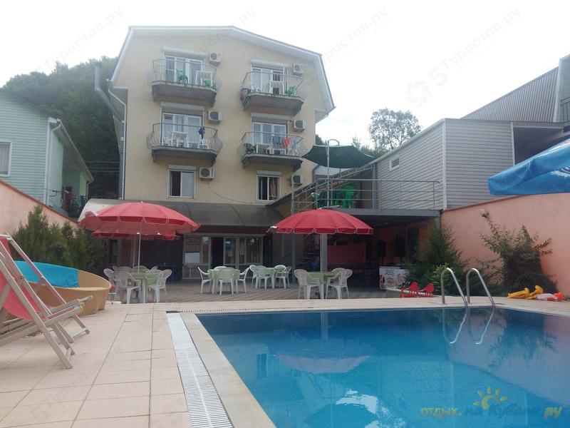 Гостевой дом "Берег солнца" представляет собой четырехэтажное здание, расположенное на побережье Черного моря в поселке Новомихайловский Туапсинского района.