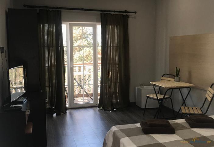 Удобства в номере: ТВ, столик, стулья, шкаф, тумбочки, холодильник, доступ к интернету Wi-Fi.