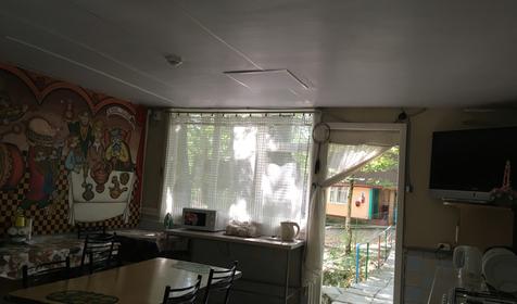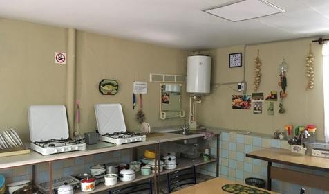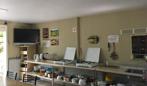 Общая кухня оборудована газовыми плитами, умывальником с горячей и холодной водой, столами и стульями, наборами посуды для приготовления пищи, есть магнитофон, телевизор, DVD.