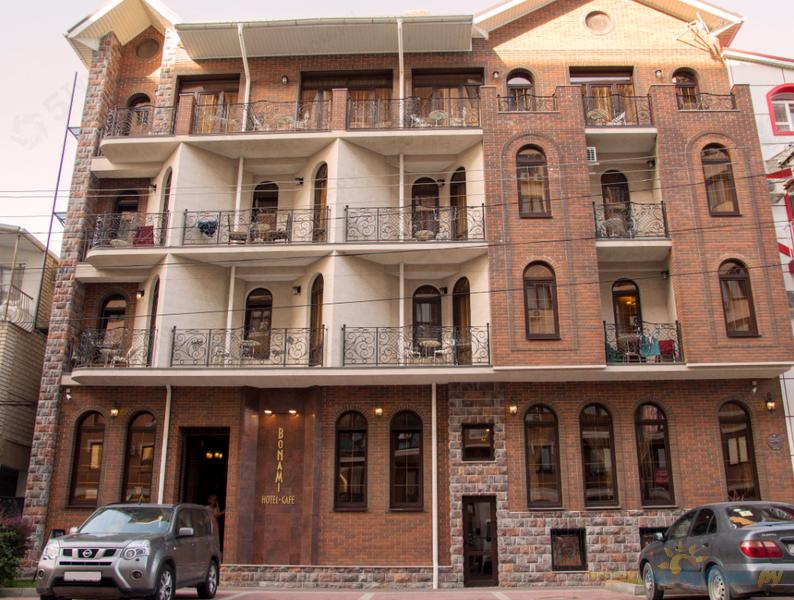 Отель "Бонами" распложен в тихом районе города Анапа в 10 минутах ходьбы от центра города. Рядом краеведческий музей, морской аквариум, несколько столовых и кафе. В 10 минутах ходьбы от отеля находится галечный пляж, хорошо оборудованный песчаный — чуть дальше.