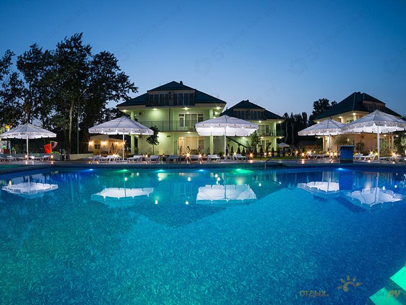 На утопающей в зелени территории более двух гектаров расположены коттеджные корпуса с современными уютными номерами, открытый подогреваемый бассейн с детской зоной, детские площадки, детский "Мини-клуб".