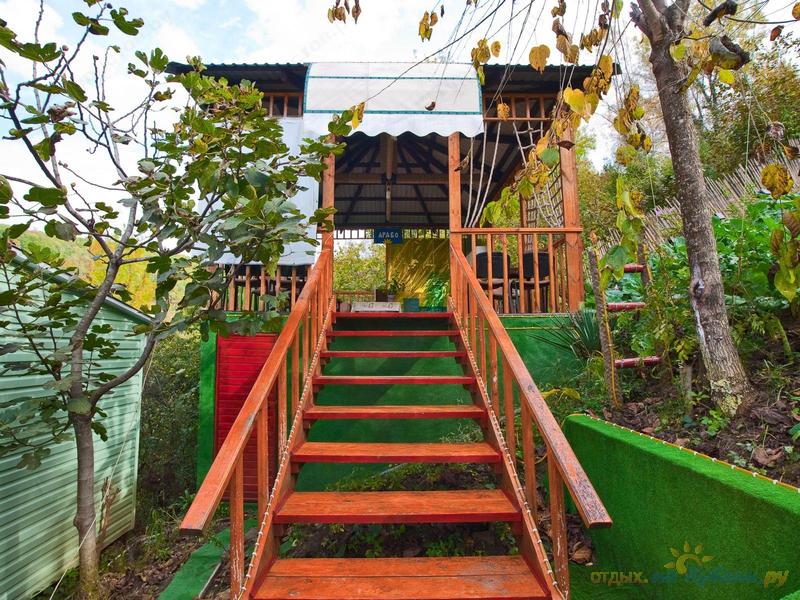 Гостевой дом "Арабо" расположен в поселке Вардане на живописной возвышенности с видом на берег Черного моря. Гостевой дом состоит из 7 отдельных трехместных домиков коттеджного типа со всеми удобствами. Домики выходят прямо в мандариновый сад. В саду также растет фейхоа и инжир, а во дворе – банановые деревья. Здесь, в тишине, среди субтропических растений, вы отдохнете по-настоящему. Есть Wi-Fi