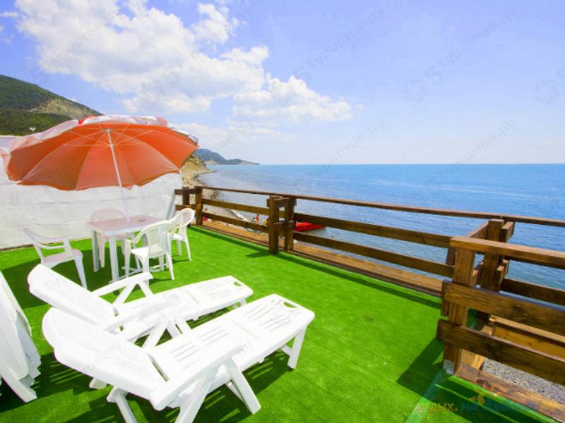 Из номеров гостевого дома вы выходите прямо на террасу с видом на море. С террасы можно спуститься вниз прямо к морю с кристально чистой водой. Здесь самое лучшее место для дайвинга.