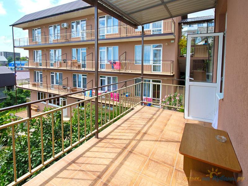 - все номера имеют балконы с видом на море и на внутренний дворик; зона загара и отдыха, беседки и принадлежности для шашлыка (мангал);