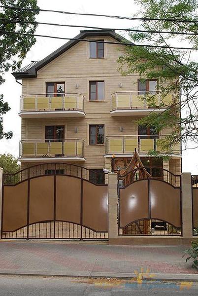 Трехэтажное здание гостевого дома (строительство окончено в июне 2009) расположено на территории площадью около 1000 кв.м., где растет много вечнозелёных деревьев, обустроены газоны, перголы. Вы можете поплавать в открытом бассейне с подогревом (10х3.8) или отдохнуть на удобной скамейке, наслаждаясь тихим вечером.