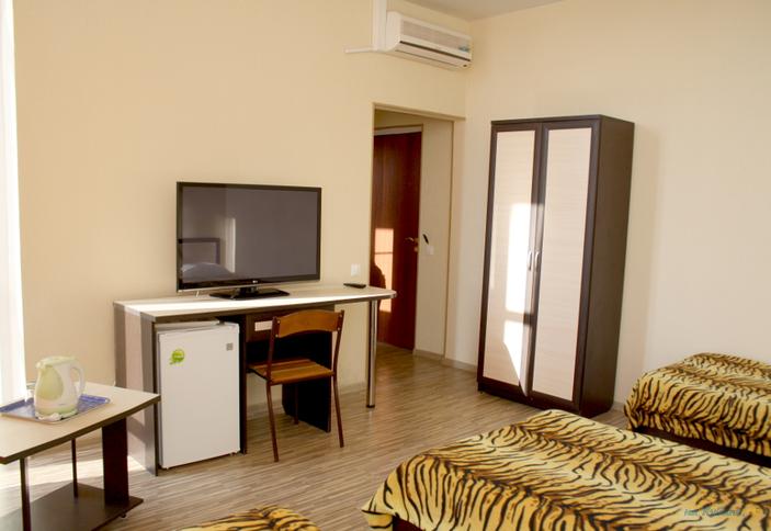Комфортабельный номер со всеми необходимыми условиями для отдыха. В номере: прихожая, 2 комнаты; спальная мебель, холодильник, сплит-система, ТВ, санузел/душ.