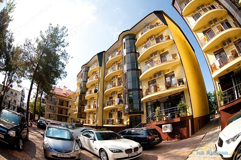 В гостевом доме есть закрытая подземная охраняемая автостоянка. На территории имеется детский игровой комплекс. Незабываемое впечатление оставит для взрослых и детей теплый открытый бассейн с элементами аквапарка.