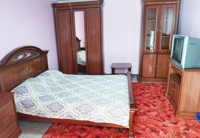 В номере: кровать двуспальная, холодильник, телевизор, кондиционер, пуфики,