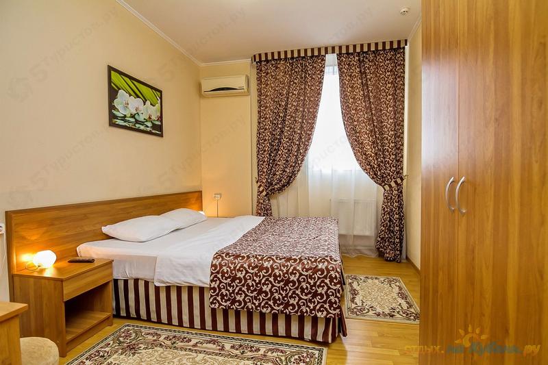 Ванна, Джакузи, Туалет в номере, Полотенца включены, Смена постельного белья, Холодильник, Сплит-система, Душ в номере, Фен, Диван, Шкаф, Журнальный столик, Спутниковое телевидение, Двуспальные кровати, Для некурящих, Отопление, Ежедневная уборка в номереКатегории номеров студио и стандарт. Предлагаемые номера выполнены в классическим стиле, в спокойных тонах, Wi-Fi по всему отелю, небольшая парковка перед отелем, видеонаблюдение.