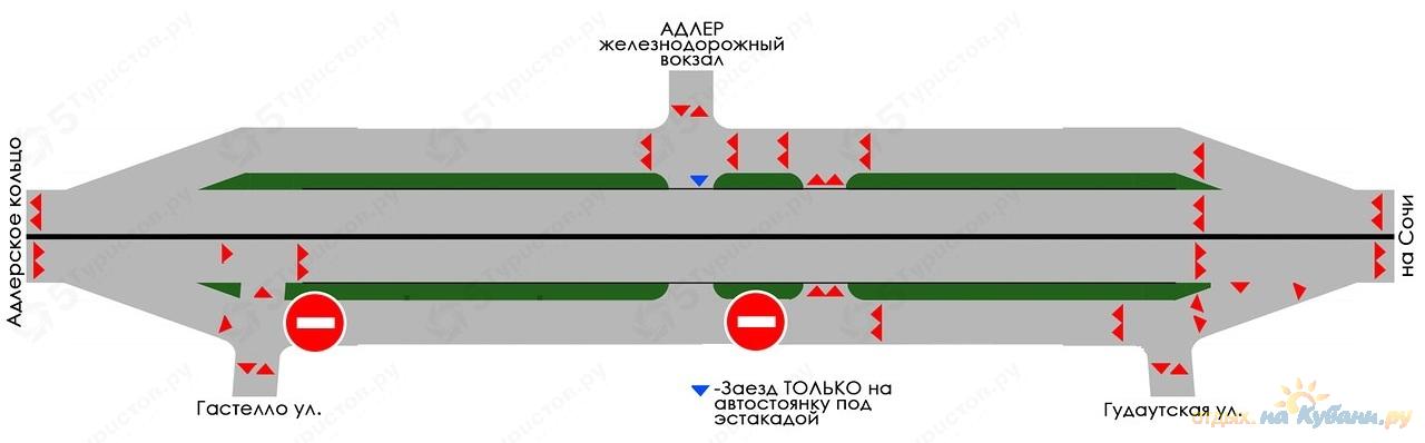 Вокзальный комплекс Адлера находится на территории Адлерского вагонного депо. Станция "Адлер" – конечный остановочный пункт поездов дальнего следования, идущих до Сочи.