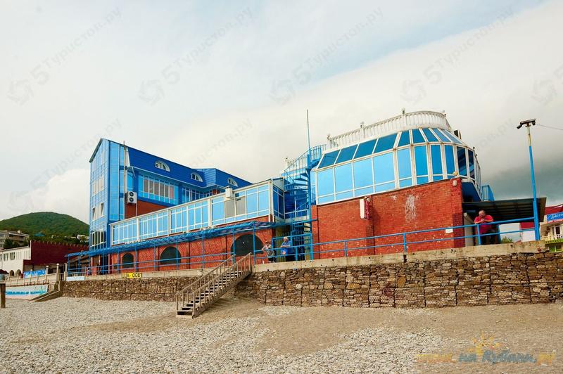 На территории гостиницы расположен продовольственный магазин типа "мини-маркет", магазины пляжных вещей и сувениров, а также кафе и летнее кафе на террасе с видом на море, пиццерия. Комплексные обеды по доступным ценам.