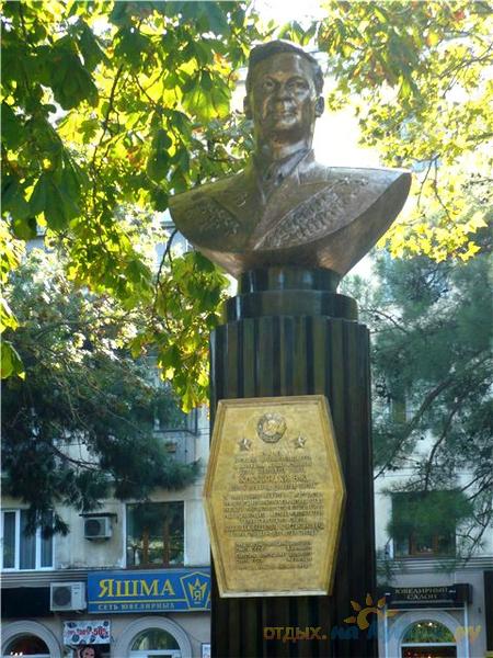 Бронзовый бюст установлен в парковой аллее в апреле 1975 г. в честь дважды Героя Советского Союза, генерал-майора авиации, заслуженного летчика-испытателя В. К. Коккинаки (1904-1985), почетного гражданина города-героя Новороссийск.