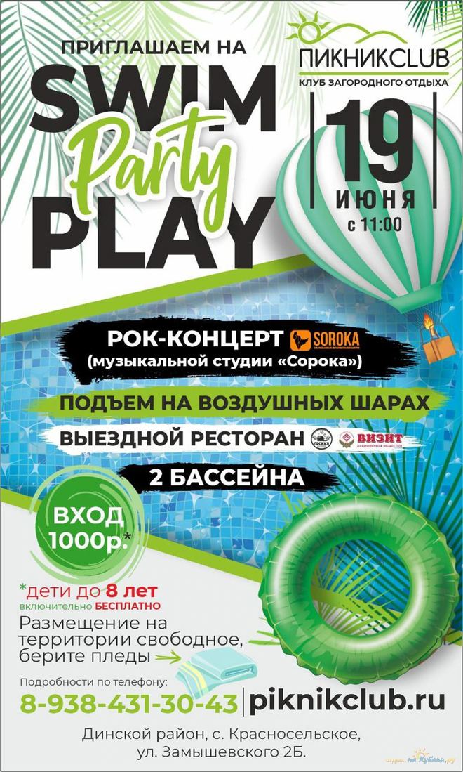 Клуб загородного отдыха "Пикник клаб" приглашает на Swim Party Play