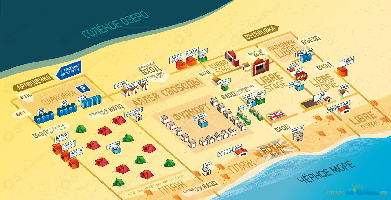 Подробная карта территории KUBANA-2014 с указанием всех бытовых и развлекательных зон.