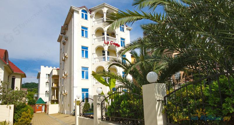 Гостевой дом "Ла-Коста" расположен на первой береговой линии – 50 метров от моря, в начале Адлерского района.