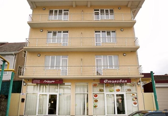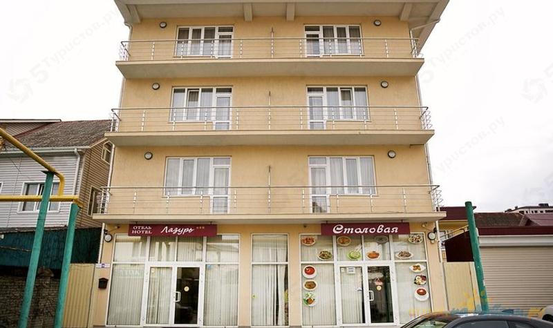 Отель "Лазурь Курортный" современный комфортабельный отель в самом сердце курортного района г. Сочи в 150 метрах от пляжа "Южный 2". На первом этаже отеля расположена круглосуточная стойка регистрации и столовая. Рядом расположено множество кафе, ресторанов, продуктовых магазинов, аптека и отделение банка "Сбербанк". Дельфинарий, Аквапарк и Океанариум находятся в пешей доступности от отеля. Лазурь Курортный так же привлекает своей транспортной доступностью: остановка общественного транспорта в 150м, ж/д вокзал в 2 км, аэропорт в 5 км.