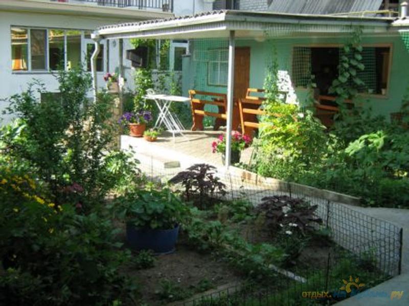 На земельном участке расположен четырехэтажный гостевой дом, во дворе - одноэтажный блок с номерами эконом и кухней для самостоятельного приготовления пищи. Двор облагарежен и озеленен, на территории - клумбы с цветами.