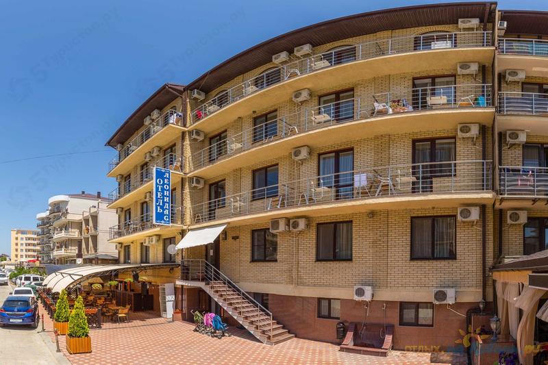 Отель "Леонидас" находится в центре курортного поселка Витязево (Анапа) на первой береговой линии всего в 500 метрах от песчаного пляжа, добраться до которого можно пешком за пять минут. В трех минутах ходьбы находится знаменитый развлекательный парк Паралия (200 метров), где найдется отдых на любой изысканный вкус.