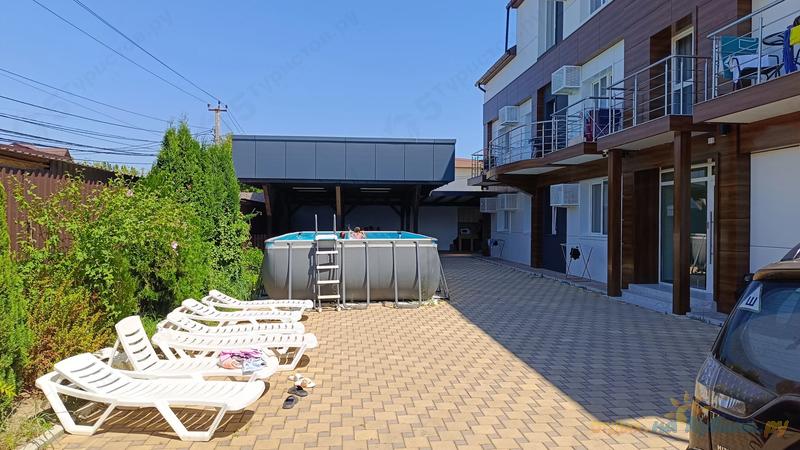 К проживанию предлагается номер с возможностью размещения 3-4 человек. В номере: двуспальная кровать и двуспальный диван, кондиционер, холодильник, телевизор, чайник, микроволновая печь, посуда, Wi-Fi. Свой санузел с душем, горячая вода. Из номера выход на свою большую террасу, где есть большой зонт и столик с креслами, веревки для сушки белья.