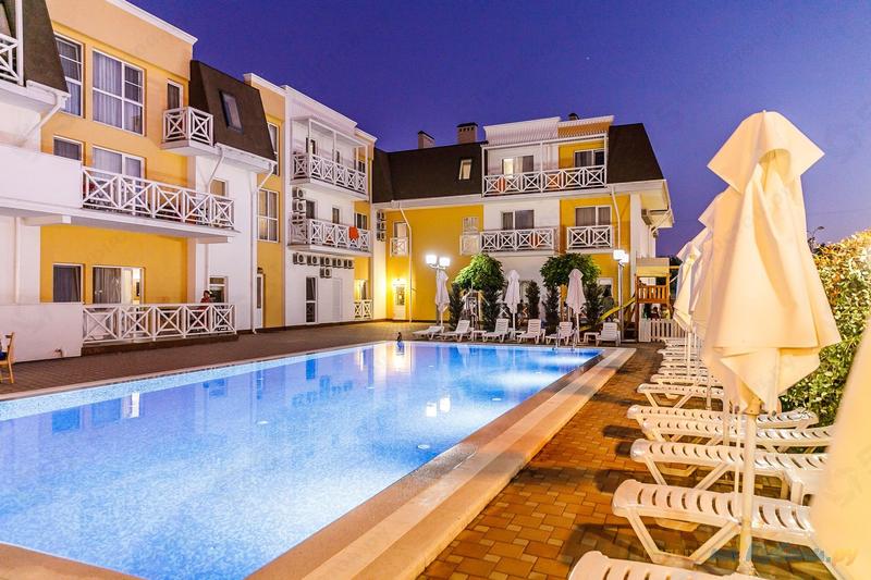 В 250 метрах от отеля к услугам гостей собственный пляж с огороженной территорией, теневыми навесами и всем необходимым оборудованием. На территории отеля открытый подогреваемый бассейн, размерами 8х15 метров, бар, детская игровая комната, тренажерный зал, кинозал, массажный кабинет, парковочные места. Детские анимационные и вечерние программы создадут настроение для всех. В стоимость номера входит трехразовое питание по системе «Шведский стол».