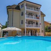 Гостевой дом "Ирбис", класса комфорт, находится в центре курортного поселка. До центрального входа на пляж – 500 метров. Вся инфраструктура в шаговой доступности, а именно магазины, рынки, столовые, кафе, парикмахерские, аквапарк, дельфинарий. На территории гостевого дома кухня, мини-бар, зона отдыха с шезлонгами у бассейна, зона барбекю, экскурсионная стойка, парковка, прачечная, Wi-Fi. Номера класса комфорт со всеми удобствами.