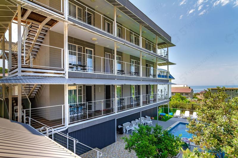 Вид на море, Кухня с набором посуды, Туалет в номере, Полотенца включены, Смена постельного белья, Кухня в номере, Холодильник, Сплит-система, Душ в номере, Фен, Кондиционер, Стулья, Журнальный столик, Умывальник, Двуспальные кровати, Балкон, Для некурящих, Номера для курящих, Смежные номера, Номера для аллергиков, Семейные номераВ гостевом доме на трех этажах расположились номера-студии различной вместимости. С балконов открывается превосходный вид на море и горы.