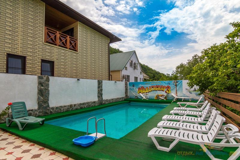 Во дворе есть бассейн, также стоят столики, качели, шезлонги, мангал, мини-бар с напитками и мороженым. К услугам гостей: Интернет Wi-Fi, трансфер на пляж два раза в день (бесплатно).