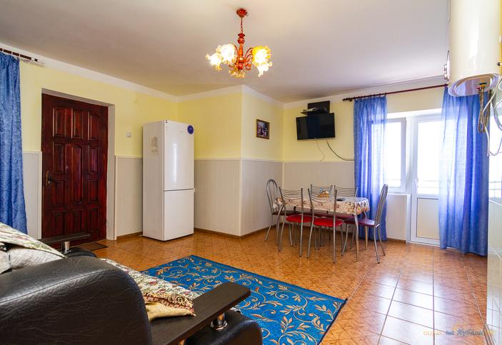 Коттедж оборудован кондиционером, спутниковым ТВ. Проживание в коттедже расcчитано на шестерых взрослых людей. Отличный выбор для больших семей! Отдыхающим предоставляются в пользование зона барбекю, шезлонги. Бронирование осуществляется по телефону.