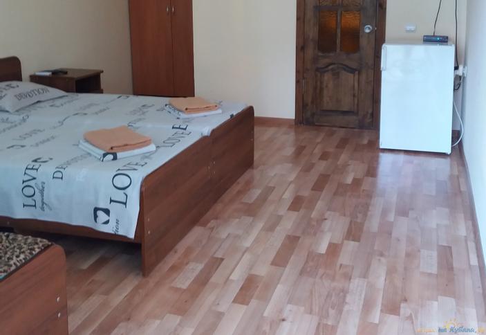 В номере имеются три кровати, которые можно при необходимости поставить вместе, прикроватные тумбочки, шкаф, раскладной столик "Бабочка", кондиционер, телевизор, холодильник. Санузел в номере.