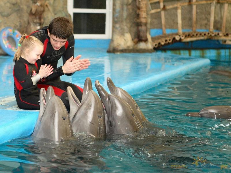 Также на территории дельфинария гости могут посетить океанариум и пингвинарий.