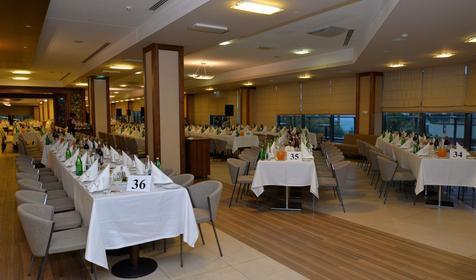 Благодаря мастерству сотрудников комплекса в ресторанах отеля организуются в различных тематических стилях свадьбы, банкеты, фуршеты, корпоративы и кофе-брейки. По желанию клиента к организации праздника можно добавить такие услуги как создание каскадов из шампанского, шоколадных фонтанов, фруктовых композиций, аперитивов и многое другое.