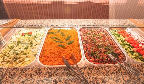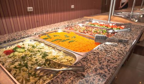 Для гостей отеля работает ресторан "Афина". Завтрак, обед и ужин представлены в форме шведского стола с широким ассортиментом блюд традиционной и национальной кухни, сезонными фруктами и безалкогольными освежающими напитками.