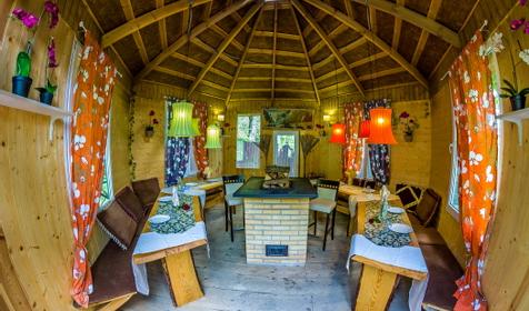 Расположена в лесу вдали от всех гостей, вместимость до 25 человек. Может быть как летней, так и зимней, с барбекю в центе зала. Подходит для гурманов в области просмотра и приготовления рыбных и мясных блюд. Маленькие гости могут пожарить блюда на шампурах под присмотром родителей.