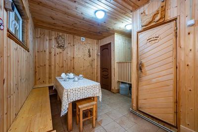 Гостевой двор "Полесье и Козья заимка" предлагает отдыхающим снять домик с баней на сутки или выходные. Настоящая русская баня не только прекрасно расслабляет, но и наполняет здоровьем, положительно воздействуя на все органы человека. Аренда домика с русской баней в реликтовом лесу вам обойдется недорого, к тому же, в дополнение к услуге, предоставляется возможность после парилки окунуться в бассейн с подогреваемой родниковой водой, выпить чай с травами, вареньем и медом из собственной пасеки.