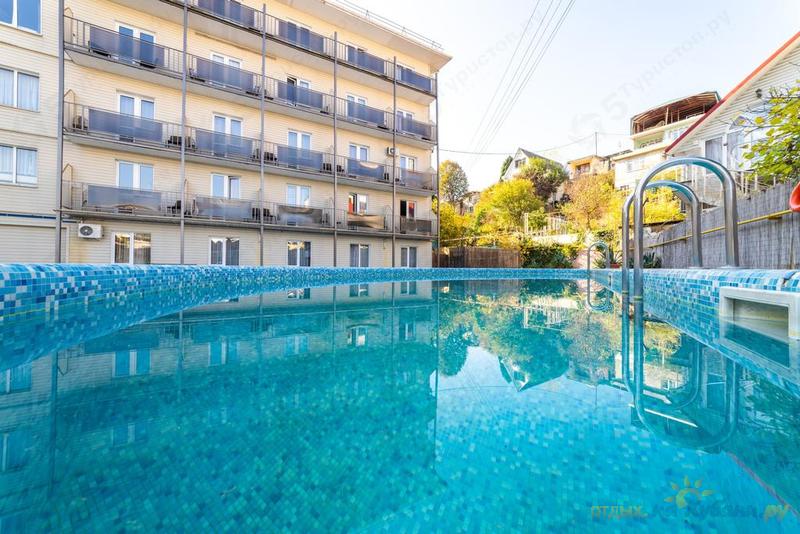 Бассейн открытыйБольшой открытый бассейн на территории пансионата с пластиковыми лежаками для комфортного отдыха. Работает в летний сезон.