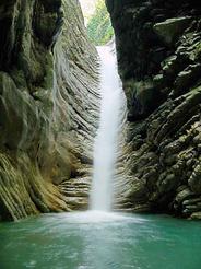 Расположены на территории Сочинского национального парка в Лазаревском районе города в живописнейшем ущелье, образованном рекой Свирь. К первому водопаду ведет каньон, в который даже в самые жаркие летние дни не проникают прямые лучи солнца, отчего только ярче выступают краски. Кажется, что попадаешь в сказку. Внезапно каньон заканчивается... глухой стеной, с которой в пене и брызгах, словно с водной горки, сбегает первый Свирский водопад. Его высота не превышает семи метров, а в месте падения он образовал озерцо с площадью зеркала не более 50 квадратных метров. Вода в нем всегда бодрит, так как не прогревается выше 14 градусов. С первым Свирским водопадом у местных жителей связано поверье о том, что, постояв под его струями, человек искупает свои грехи, как будто омывшись святой водой. Так что и весь каньон называют священным.