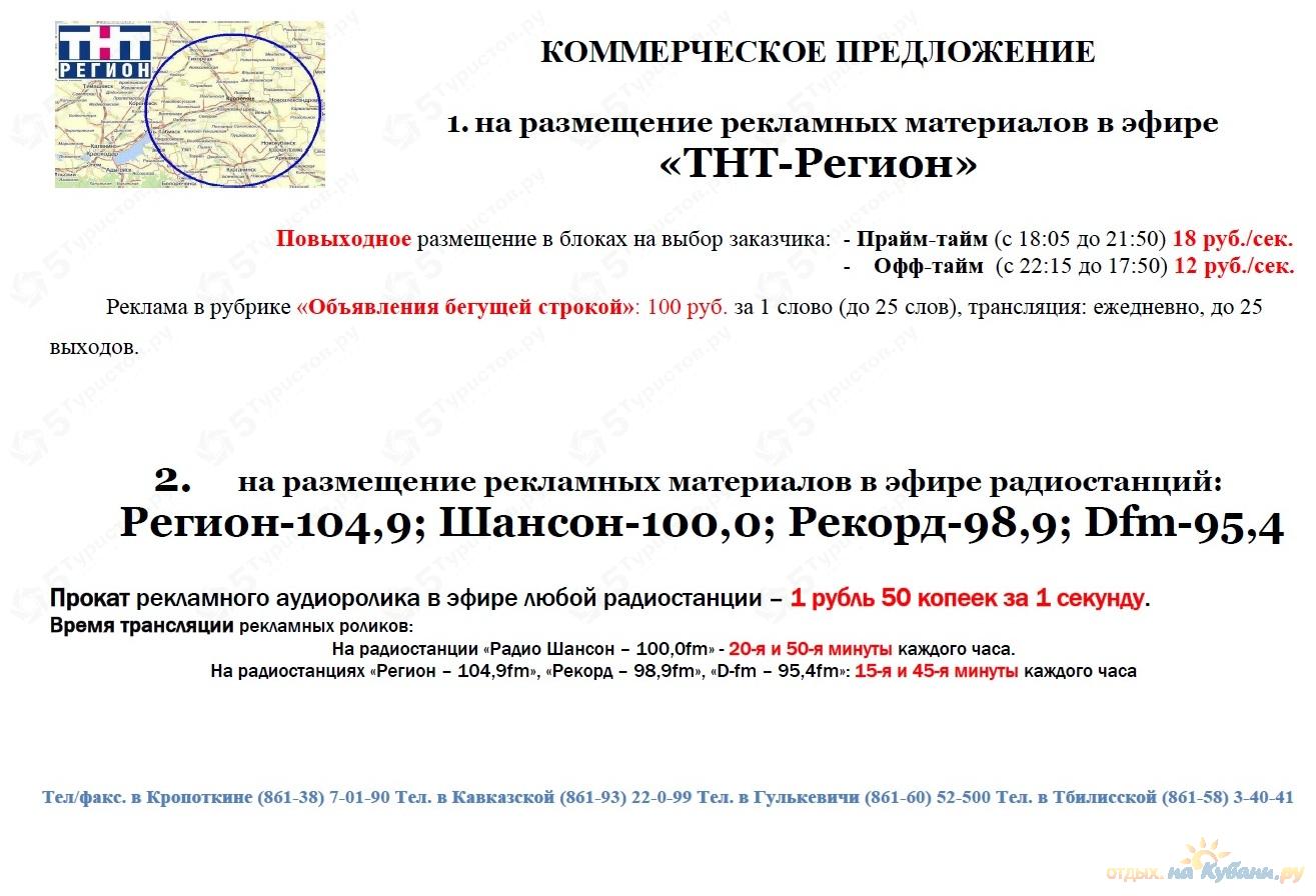 Телерадиокомпания "Регион" – идеальное средство рекламы. У нас можно заказать все – от сценария, до размещения уже готового продукта на телевидении и радио. Наша компания является региональным партнером телеканала ТНТ и радиостанций: Шансон, Record, DFM.