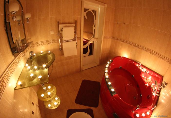 Номер Свадебный: сплит-система, двуспальная кровать, стол на 6 персон в гостиной, телевизор, холодильник, душевая кабина, джакузи, фен, махровый халат, тапочки, гигиенический набор, балкон с видом на парк.