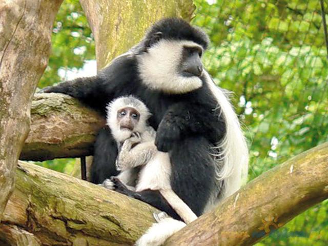 КОРМ. Питаются в основном листьями, но в зависимости от сезона года с удовольствием едят цветы, фрукты, корни, семена, проростки растений. Влагу колобусы получают из пищи, но также пьют росу и скопившуюся в дуплах деревьев дождевую воду.