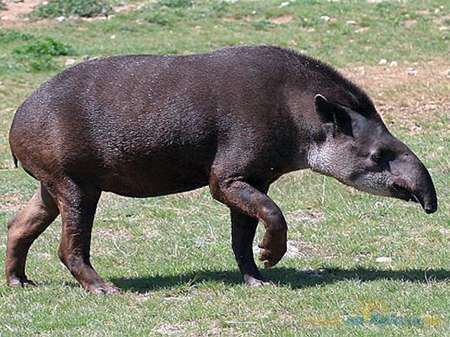 Тапир – одно из древнейших животных. В Америке живут три вида этого рода, в Азии – один. Тапир равнинный наиболее известен и распространен более других сородичей. Передние ноги – четырехпалые, задние – трехпалые, с маленькими копытцами. Хорошо приручаются. Деревенские детишки катаются на них верхом. Охота на тапиров ради мяса и кожи существенно уменьшила их популяцию, и недавно все четыре вида тапиров были занесены в список животных, которым грозит вымирание.